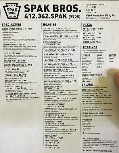 Introducing the menu at Spak Brothers Pizza and More, located at 5107 Penn Ave, Pittsburgh, offers an enticing range of options that cater to all palates. Renowned for its delicious pizzas, this establishment also excels in hearty hoagies, vibrant salads, and a commendable vegan selection that does not skimp on flavor.